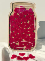 - Bag of Fuschia heart Tokens to fill up the Jar. Includes a chic, clear acrylic stand for easy tabletop display.